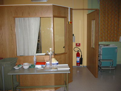 | Røntgenskjermvegg 2 mm Pb utført i eik finer Hamar sykehus | |||